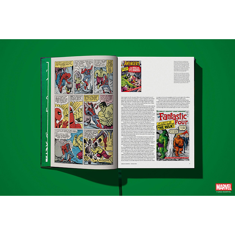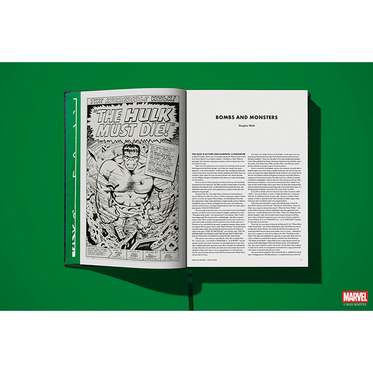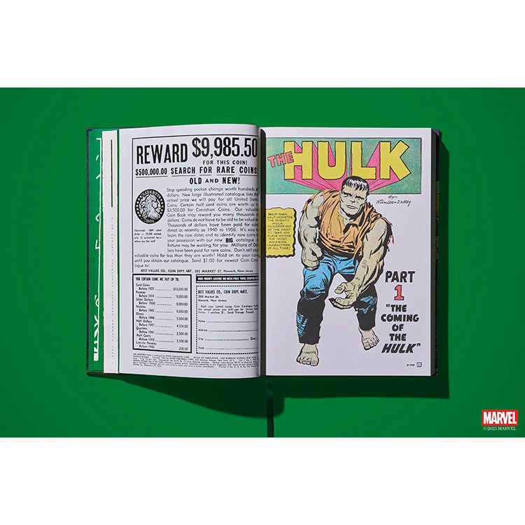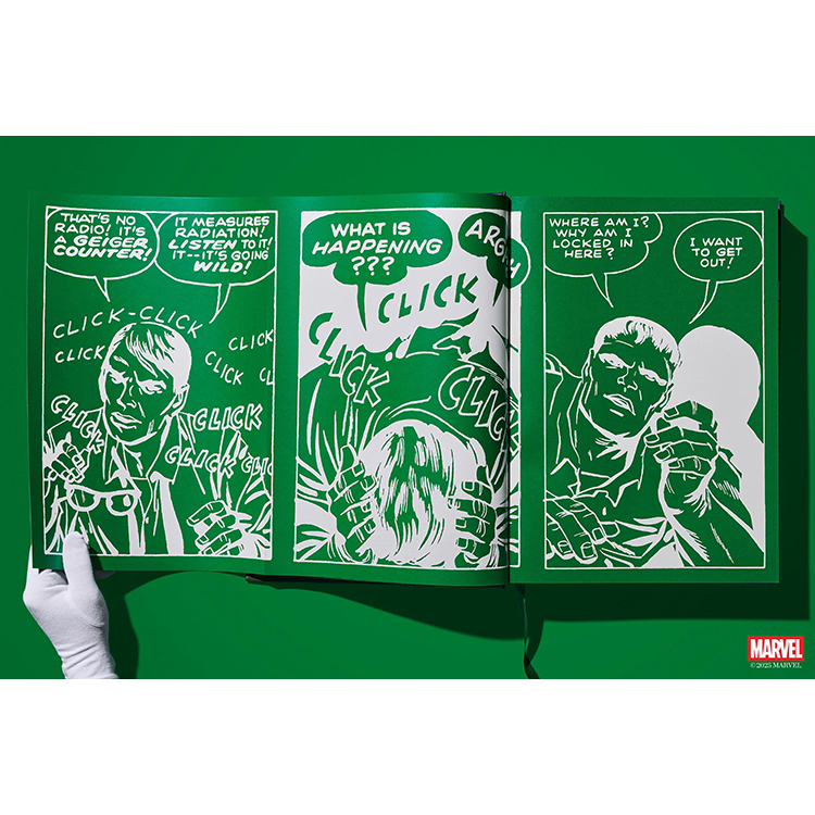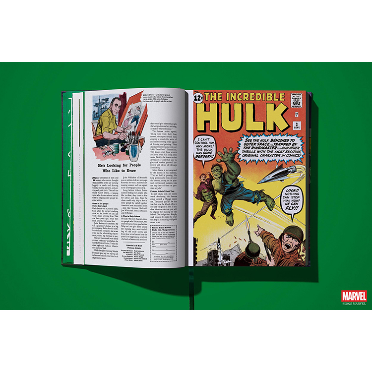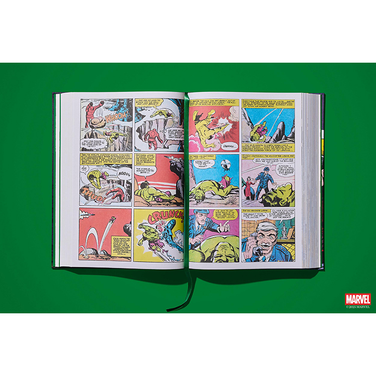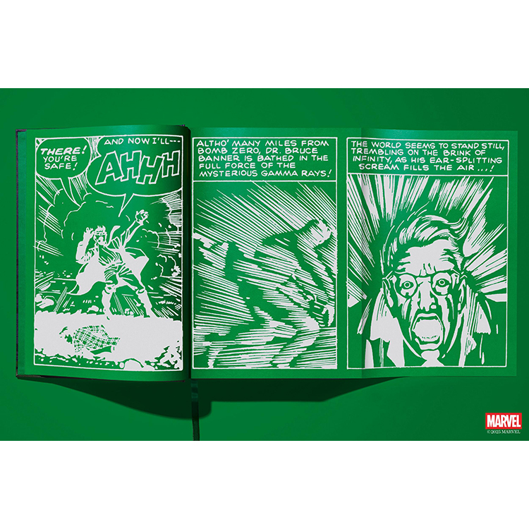 이제 TASCHEN은 그 이름에 걸맞은 XXL 사이즈의 볼륨으로 지금껏 본 적 없는 헐크를 선보인다. 《The Incredible Hulk》 1~6권과 《Tales to Astonish》에 등장한 초기 출연작들을 모두 수록하고 있다. 모든 이슈는 TASCHEN의 정교한 복원 방식으로 촬영되었으며, 처음 출간되었을 당시의 느낌을 그대로 재현하는 동시에, 당시의 저렴하고 불완전한 인쇄 품질 문제를 보정하기 위해 현대적인 리터칭 기술을 적용했다.