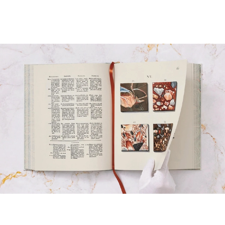 대리석 샘플의 복잡한 세부 사항을 묘사하는 새로운 사진을 특징으로 하는 이 에디션은 알려지지 않은 보물을 관련성으로 되돌립니다. 각 접시들은 손으로 꼼꼼하게 채색되고 정교한 방식으로 배열되어 있으며, 추상적인 예술적 느낌이 있어 이 볼륨을 거의 현대적인 느낌을 줍니다.