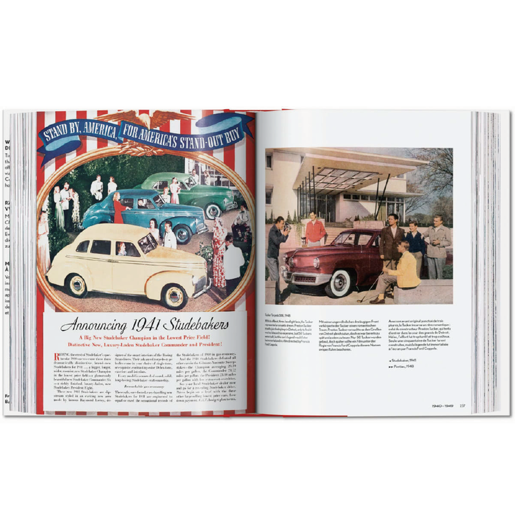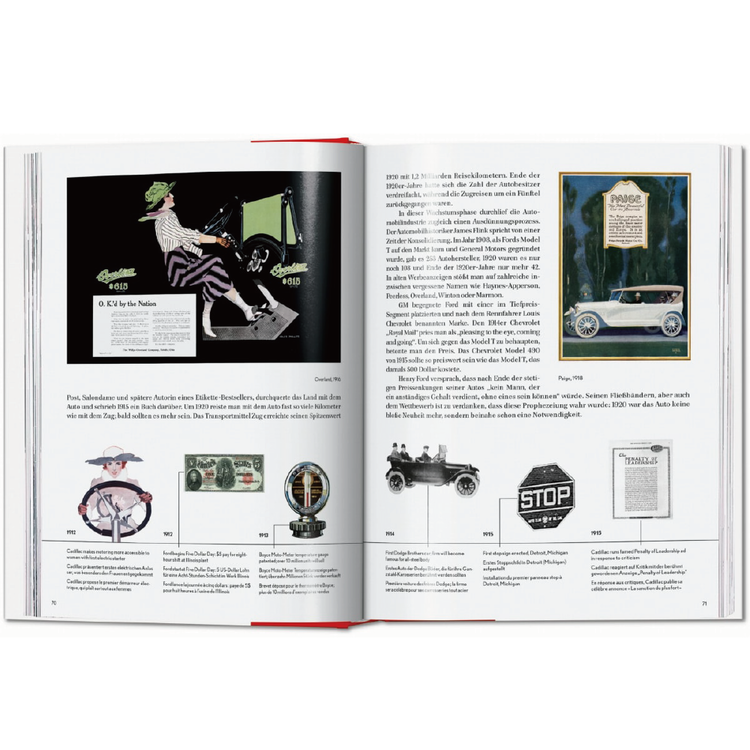 이 책은 한 세기 동안 자동차 광고에서 수집한 이미지를 사용하여 말 없는 마차에서 바퀴 달린 로켓으로, 그리고 그 이상으로 자동차의 진화를 추적합니다. 이 책은 전 뉴욕 타임즈 자동차 작가 필 패튼의 소개와 챕터 텍스트와 그림 타임라인을 통해 기술 혁신, 주요 제조업체 및 딜러, 역사적 사건 및 대중 문화가 자동차 디자인에 미치는 영향을 강조합니다.