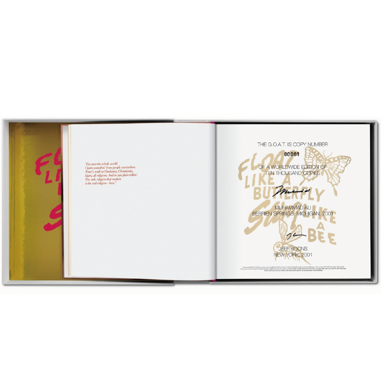 9,000부로 제한된 이 컬렉터 에디션은 무하마드 알리와 제프 쿤스가 서명했으며 특징은 다음과 같습니다: