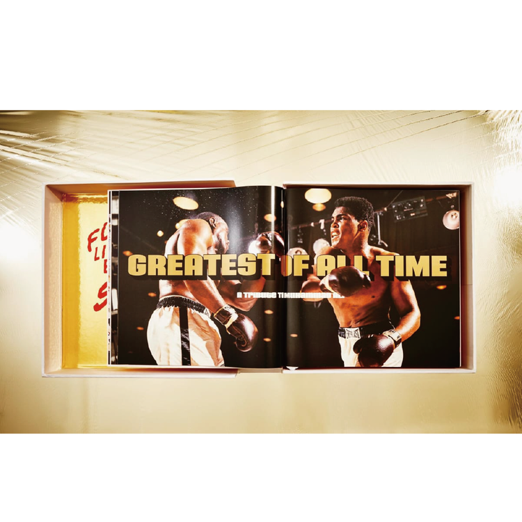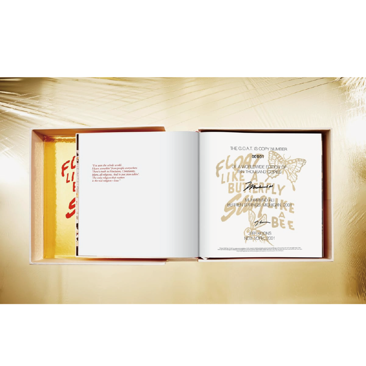 무함마드 알리에 대한 최고의 찬사. 각 책에는 무하마드 알리와 제프 쿤스가 서명하고 제프 쿤스가 만든 조각 레이디얼 챔프와 하워드 L. 빙엄과 무하마드 알리가 서명한 챔프의 젤라틴 은화 4점이 함께 증정됩니다.