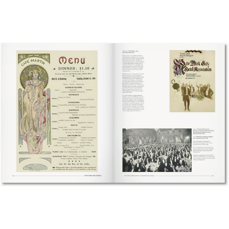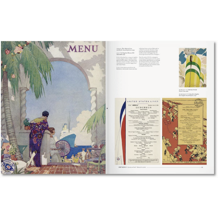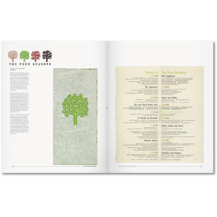 메뉴 커버 외에도 다양한 메뉴 인테리어가 준비되어 있어 식도락적인 투어와 100년 이상의 외식에 대한 통찰력을 제공합니다. 그래픽 디자인 작가 스티븐 헬러의 메뉴 디자인 역사에 대한 소개와 요리 역사가 존 마리아니의 확장된 캡션이 책 전체에 메뉴와 함께 제공된다. 다양한 음식점 사진들이 그래픽과 미식 역사를 즐기는 사람들에게 어필할 이 부록을 둘러싸고 있다.