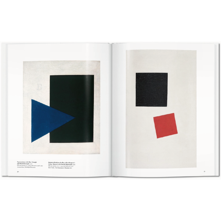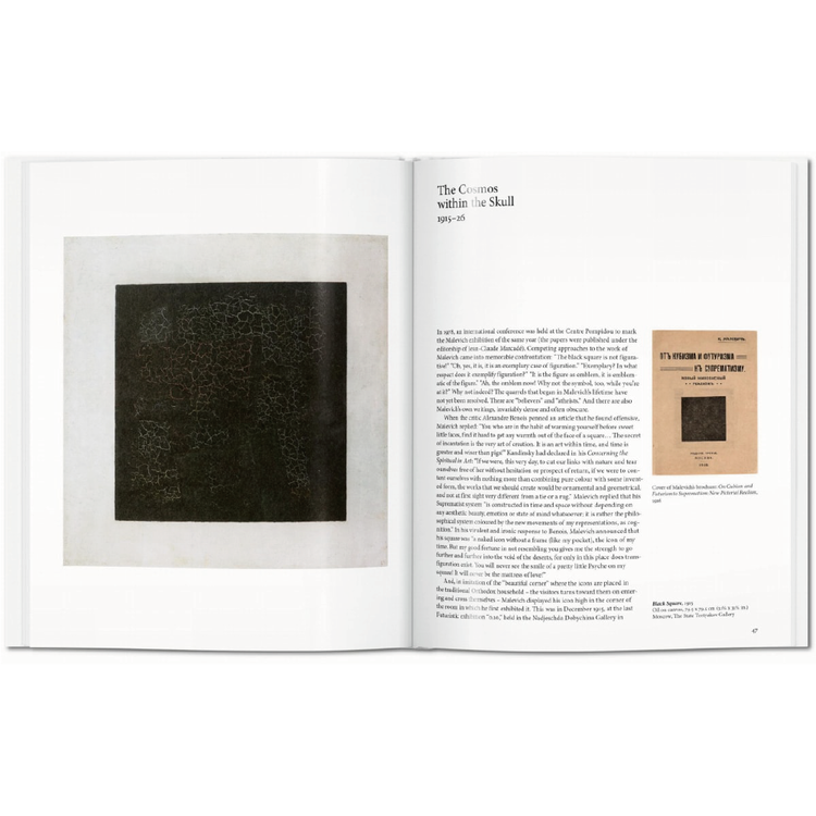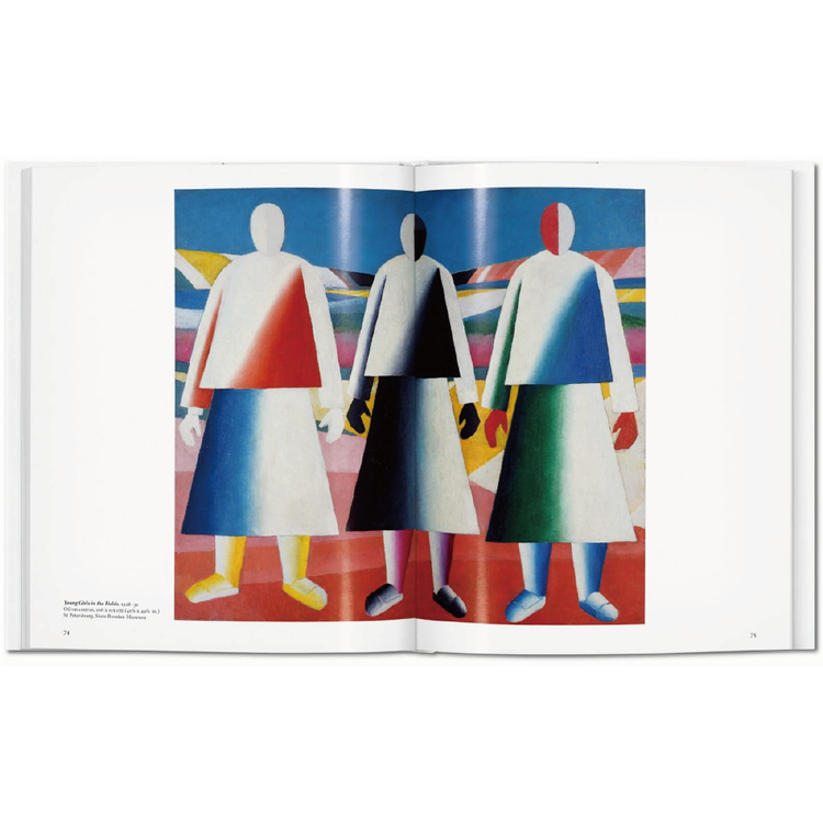 이 책에서 우리는 말레비치의 주요 혁신과 아이디어를 따르고 그의 획기적인 업적을 러시아와 글로벌 아방가르드의 맥락 안에 배치한다. 그의 작품의 풍부한 삽화를 통해, 우리는 엄격한 기하학적 추상화와 "창조 예술에서 순수한 감정의 우월성"에 기초한 예술가의 최고주의 이론, 구성주의의 발전에 주도적인 역할, 철학, 문학, 러시아 민속 예술, 그리고 네 번째 동전에 대한 그의 관심을 탐구한다.