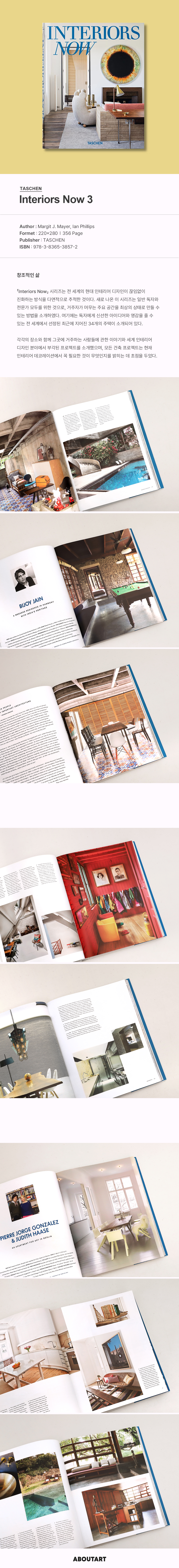 이러한 트렌드가 세심하게 반영된 「Interiors Now」 시리즈가 탄생하였다. 「Interiors Now」 시리즈는 전 세계의 현대 인테리어 디자인이 끊임없이 진화하는 방식을 다면적으로 추적한 것이며, 타셴은 이를 책으로 엮었다. 새로 나온 이 시리즈의 각 권은 일반 독자와 전문가 모두를 위한 것으로, 거주자가 머무는 주요 공간을 최상의 상태로 만들 수 있는 방법을 소개하였다. 최근에 지어진 주택을 모아 편집했으며, 여기에는 독자에게 신선한 아이디어와 영감을 줄 수 있는 주택도 소개되어 있다. 당신의 집도 이 책에 실린 집처럼 변신할 수 있을 것이다. 사진작가 이네즈 반 램스비어드 & 비누드 마타딘(Inez van Lamsweerde & Vinoodh Matadin)의 건축물인 뉴욕 로프트는 오리나무로 지어진 건축물이다. 이 건물에서는 편안함을 느낄 수 있으며, 남 이탈리아에 위치한 프란시스 포드 코폴라(Francis Ford Coppola)의 궁전을 위해 지어진 자크 그랑게로(Jacques Grange)의 건축물에서는 여유로운 로맨스를 찾아볼 수도 있다. 뭄바이의 젊은 아트 콜렉터 커플이 사는 아파트 등, 이 책에 실린 모든 건축 프로젝트는 현재 인테리어 데코레이션에서 꼭 필요한 것이 무엇인지를 밝히는 데 초점을 두었으며, 다각적인 면에서 인테리어에 중요한 요소를 엄선하여 책에 실었다.