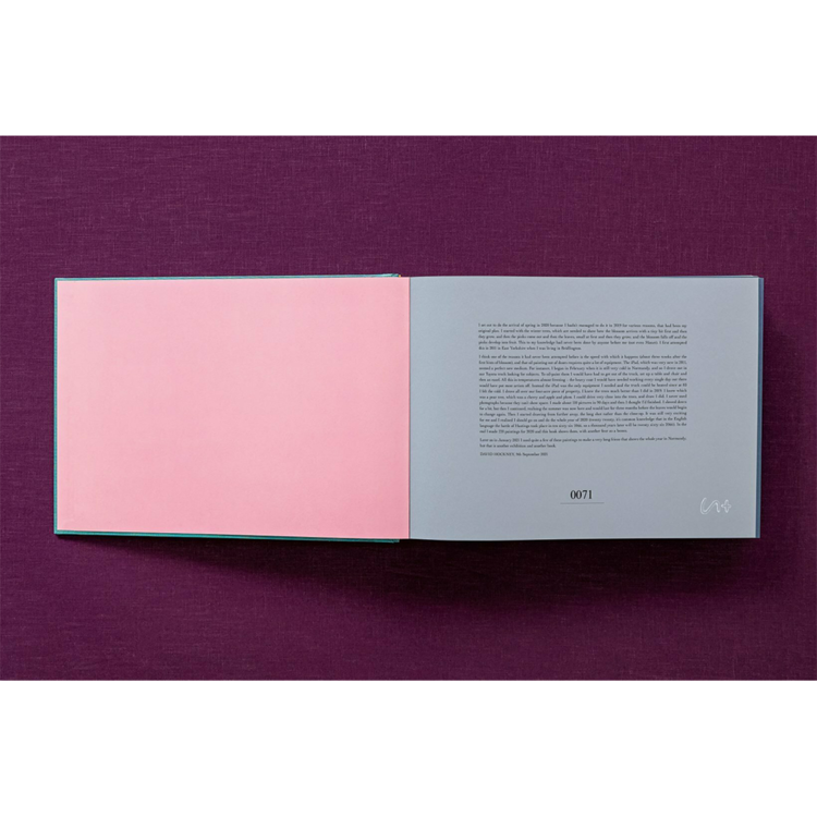 노르망디의 풍요로운 들판과 목초지에 있는 작고 그림 같은 농가에서 데이비드 호크니는 2020년과 새해에 걸쳐 변화하는 계절을 따라갔습니다. 그는 아이패드를 사용하여 자신을 둘러싼 풍경, 첫 봄꽃, 여름의 냄새, 가을의 포화색, 그리고 겨울의 어두운 나뭇가지들의 삭막한 모양을 자연스럽게 묘사했습니다. 이 책에 있는 220개의 아이패드 그림들은 작가의 풍부한 비전에 맞춰 7가지 특별한 색상으로 인쇄되어 진청색 종이책자에 끼워집니다. Hockney의 짧은 소개는 어떻게 이 계획된 프로젝트가 코로나 봉쇄 기간 동안 생명줄이 되었는지를 보여주며, 그는 거기서부터 희망의 메시지를 퍼뜨렸습니다: "그들이 봄을 취소할 수 없다는 것을 기억하세요."