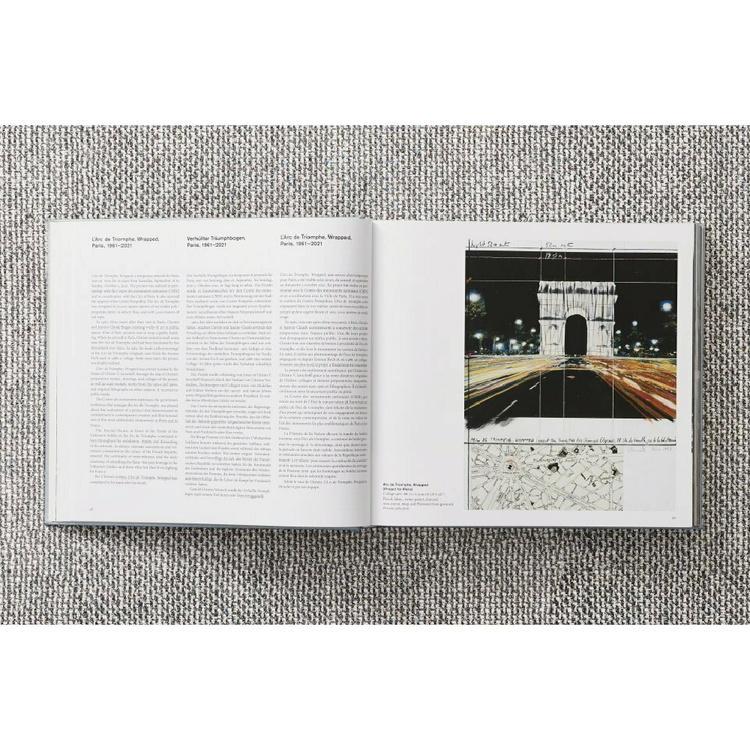 개선문을 포장하려는 크리스토와 잔 클로드의 평생 꿈은 2021년에 마침내 탄생 60년 만에 사후 프로젝트로 실현되었습니다. 이 큰 프로젝트 북은 크리스토의 그림과 콜라주, 기술 개발, 재료 생산, 스릴 넘치는 설치 과정, 그리고 전 세계 수백만 명의 방문객들이 공유한 마지막 16일간의 경험을 기록하고 있습니다.