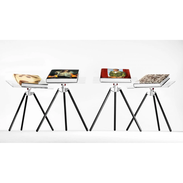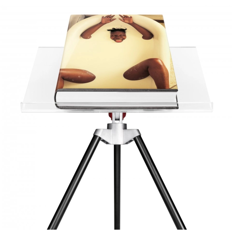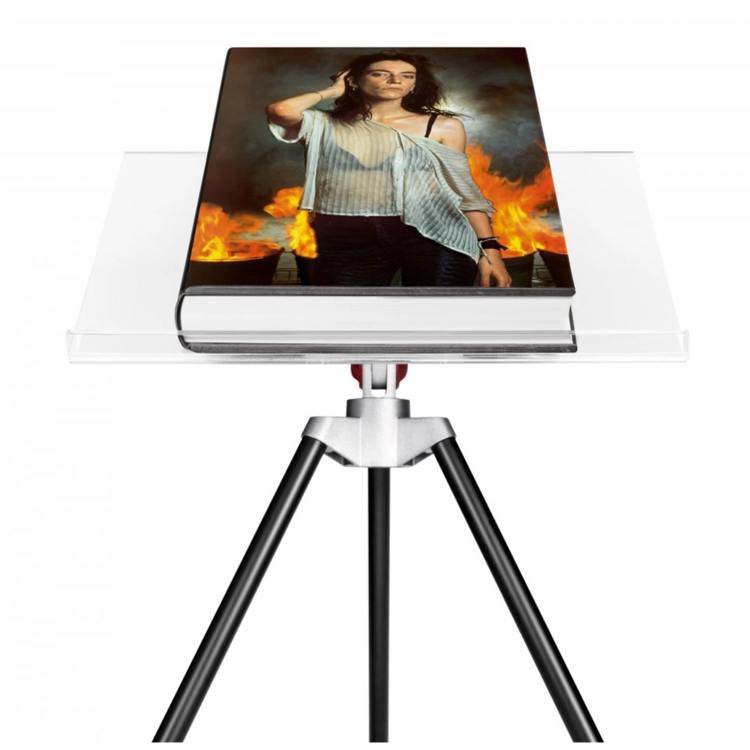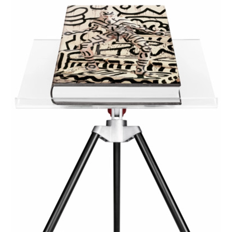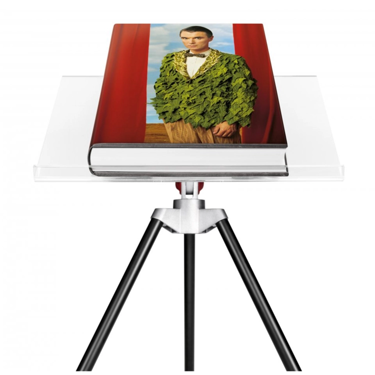 두 판 모두 마크 뉴슨이 디자인한 삼각대 북 스탠드가 있다.