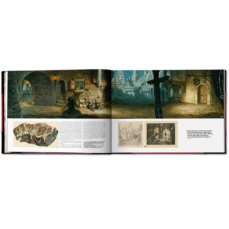 개인 소장품뿐만 아니라 월트 디즈니 컴퍼니의 역사적 소장품을 통해 수행된 광범위한 연구로, 다니엘 코텐슐테 편집자는 이러한 애니메이션 걸작들이 어떻게 살아났는지를 밝히기 위해 가장 귀중한 개념 그림과 스토리보드 중 일부를 수집한다. 디즈니의 사진작가들이 찍은 희귀한 사진들과 월트와 그의 스태프들 사이의 이야기 회의에서 발췌한 사진들이 특권층 인사이더들의 관점을 스튜디오의 창조적 과정에 가져다 주는 반면, 마스터풀 셀 설정들은 유명한 영화 장면들의 매우 상세한 삽화를 제공한다.