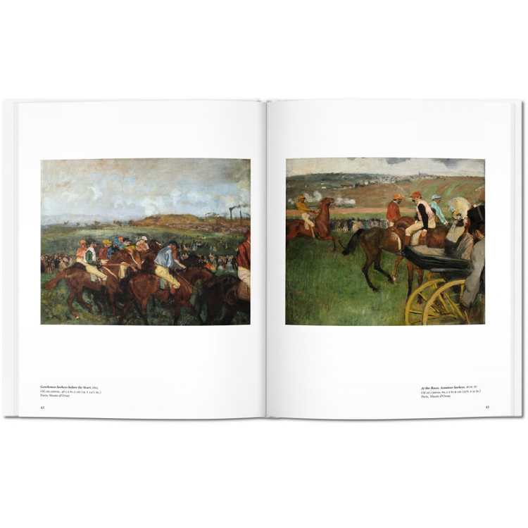 Foyer de la Danse (1872), Musicers in the Orchestra (1872), 그리고 더 많은 것들의 삽화들을 통해, 이 책은 그 자신만의 범주를 만든 예술가의 본질적인 개요, 고전적 공명, 대담한 구성, 그리고 가장 인상적이고 영향력 있는 일부를 함께 만들어낸 움직임에 대한 끝없는 매혹을 제공한다.