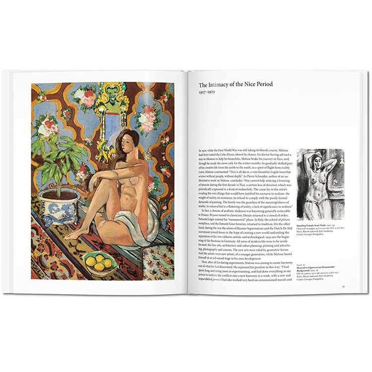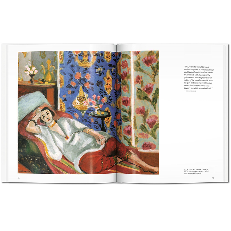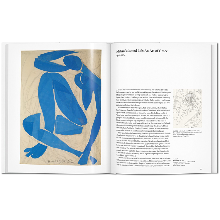 포괄적이고 유익한 출처인 이 호화로운 삽화가 실린 출판물은 마티스 유산과의 긴밀한 협력으로 수정되었다. 준비 연구, 전면 복제, 그리고 확대된 세부 사항들을 포함하여, 그의 파우브 시대의 색채의 찬란함에서부터 80세의 무르익은 나이에 그의 구아체 오려낸 발명까지, 그 예술가의 모험적인 길을 발견한다. 각각의 이미지는 표현주의적인 탁월함에 걸맞는 시청 경험을 만들기 위해 고심하며 재현되었다. 유색인종도 그에 못지않게 가치가 있다.