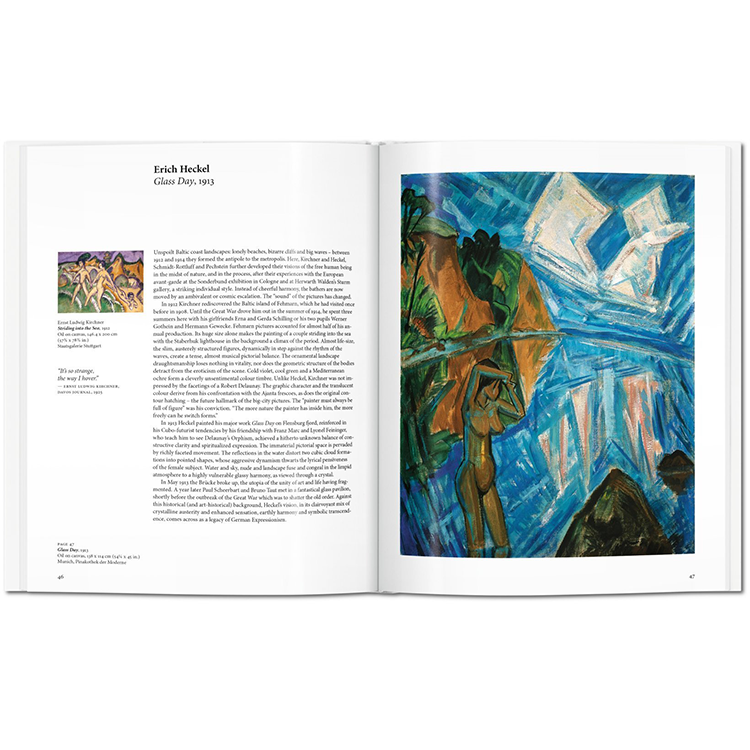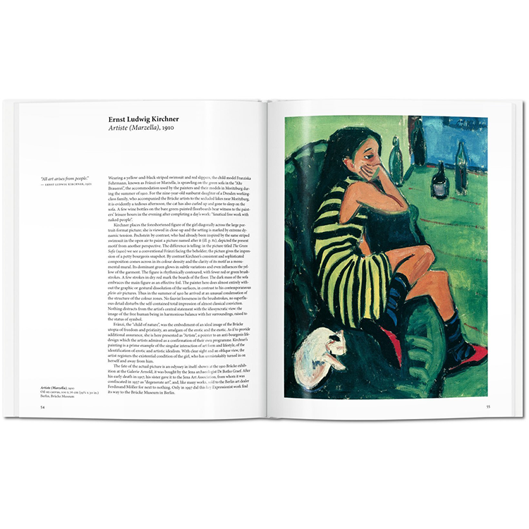 이 풍부한 삽화가 있는 책은 이러한 본질적인 표현주의 운동을 소개하고 있다. 우리는 Die Brücke의 주요 작품과 주인공들, 그것의 다양하고 국제적인 영감들, 그리고 그것이 후기 20세기 예술에 미치는 결정적인 영향을 살펴본다. 도중에, 우리는 솔직한 누드, 붐비는 거리의 풍경, 그리고 새로운 종류의 예술에 대한 에너지와 의도로 생생한 목욕 목가를 발견한다.