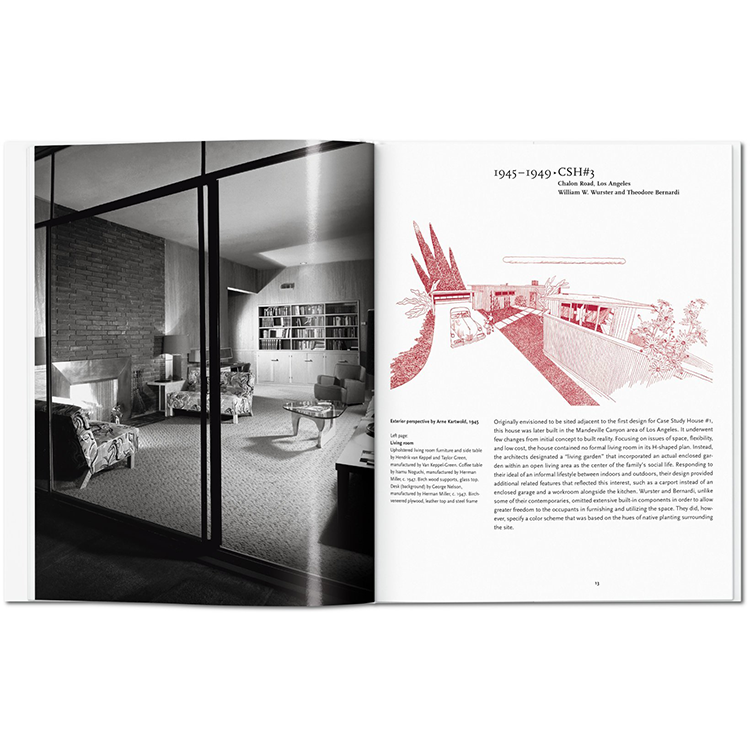 로스앤젤레스 지역에 집중된 케이스 스터디 하우스에는 리처드 뉴트라, 라파엘 소리아노, 크레이그 엘우드, 찰스 앤 레이 임스, 피에르 코닉, 에로 사리넨, A. 등 당대의 주요 건축가들로부터 의뢰받은 36채의 모델하우스가 포함되었다. 퀸시 존스, 그리고 랄프 랩슨. 그들의 기준은 "실용 가능한 한 현대 세계에서 인간의 삶에 대한 표현에 가장 적합한 많은 전쟁 출생 기술들과 재료들을 사용하는 것"을 포함했다.