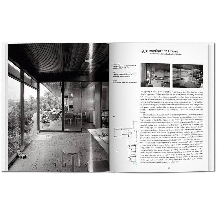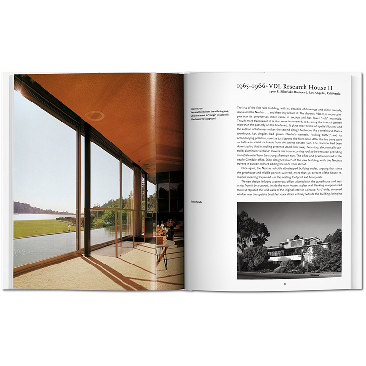 이 풍부한 삽화가 있는 건축가 소개는 Neutra의 경력을 정의하는 프로젝트를 보여준다. 자연의 경이로움 속에 자리 잡은 선명한 구조로, 우리는 국제 스타일의 절제된 기하학적 구조만큼 자연의 불규칙한 선과 변화하는 색상을 통합한 모더니즘의 특히 전체론적 브랜드를 기념한다.