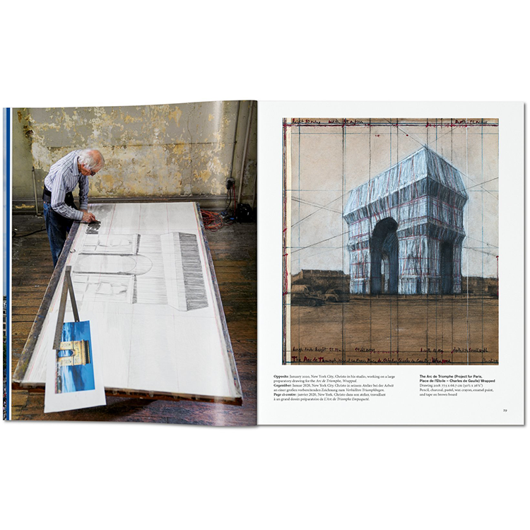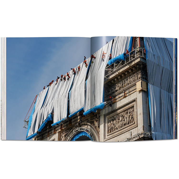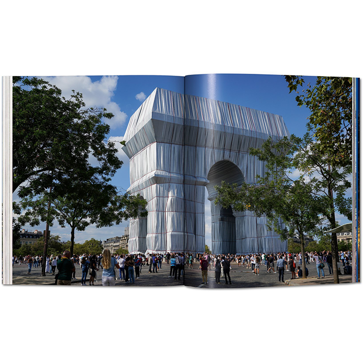 1961년, 파리에서 잔 클로드를 만난 지 3년 후, 크리스토는 도시의 가장 상징적인 기념물 중 하나를 포장할 매머드 프로젝트에 대한 연구를 만들었습니다. 60년, 25,000 평방미터의 재활용 가능한 직물, 그리고 3,000미터의 밧줄이 마침내 예술가들의 비전이 실현되었습니다. 사진, 그림 및 프로젝트 제작 이력을 수집한 이 책과 함께 사후 설치를 확인하십시오