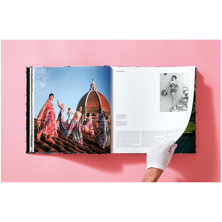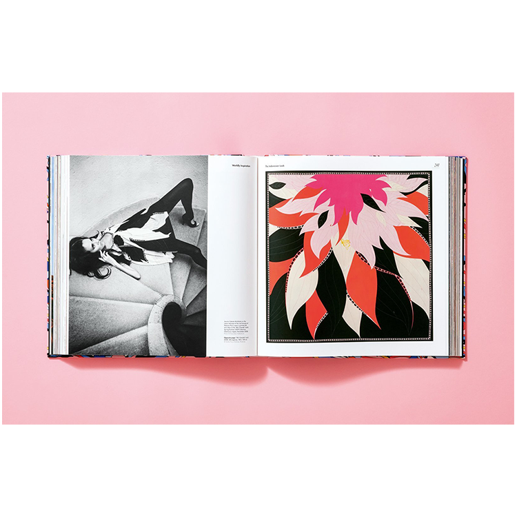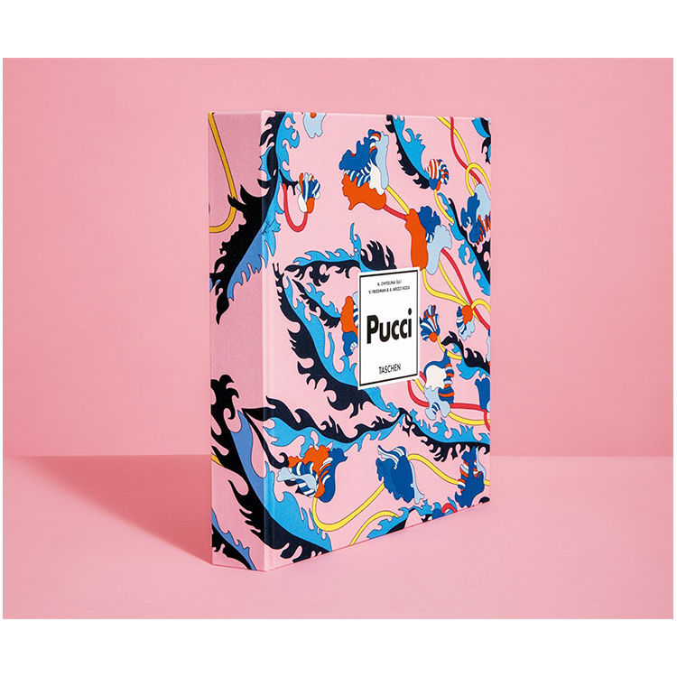 각 책은 Emilio Pucci 컬렉션의 오리지널 프린트 패브릭 중 하나와 고유하게 결합되어 있으며 사용 가능한 멋진 패브릭 중 하나와 함께 제공된다.