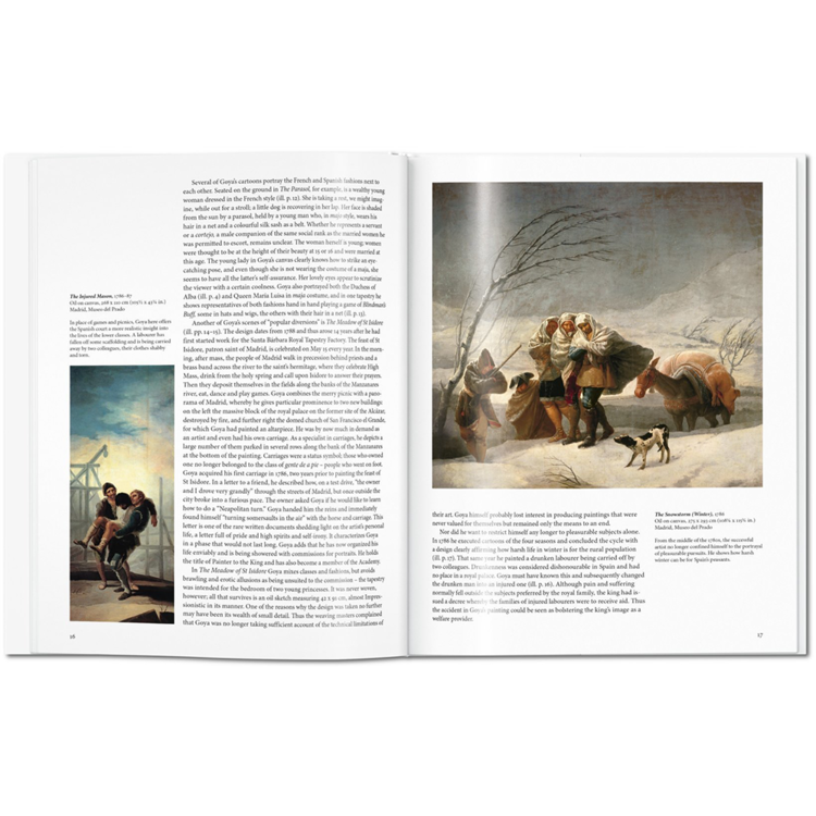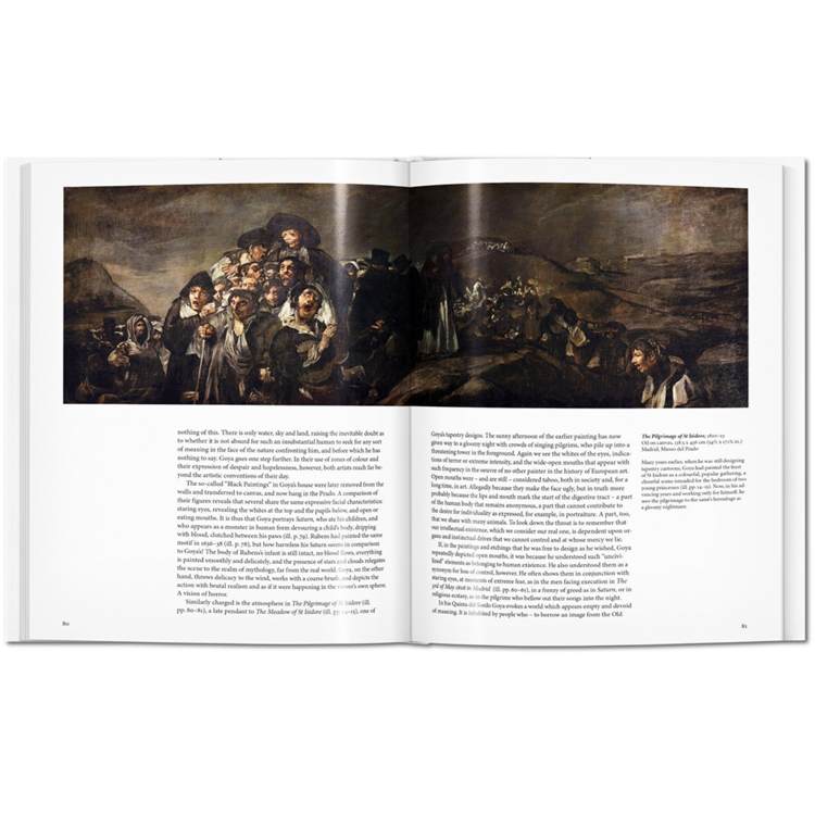 TASCHEN Basic Art 2.0의 이 입문서에서 우리는 우아한 궁정 화가에서 고통의 죽음과 그로테스크리에 이르기까지 고야의 놀라운 경력의 모든 호를 탐구하기 시작했다. 도중에 우리는 마드리드에서 돈 마누엘 오소리오 만리케 데 수니가, 눈부신 네이키드 마자, 그리고 1808년 5월 3일 같은 유명한 초상화들을 만나게 되는데, 이것은 예술 역사상 가장 가슴을 울리는 전쟁의 이미지 중 하나이다.