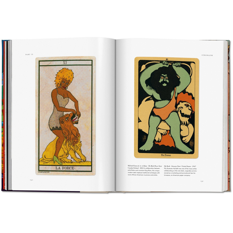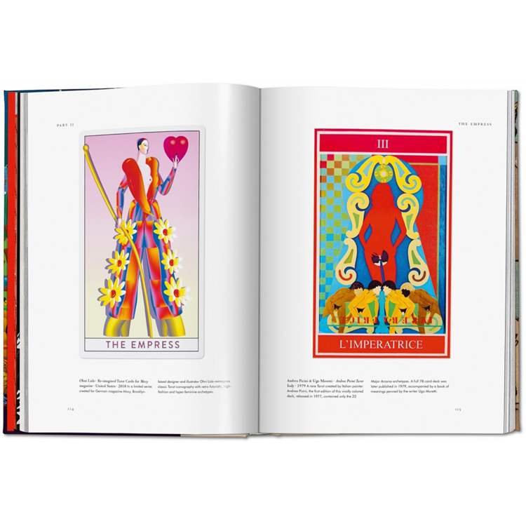 작가 제시카 헌들리는 TASCHEN의 에소테리카 도서관 시리즈의 첫 권인 타로에서의 이 매혹적인 역사를 추적한다. 이 책은 500개 이상의 카드와 독창적인 예술 작품 뒤에 숨겨진 상징적인 의미를 탐구하는데, 그 중 3분의 2는 갑판 밖으로 출판된 적이 없다. 이것은 중세부터 현대까지 아우르는 최초의 시각적 요약본이며, 메이저 아르카나와 마이너 아르카나의 78장의 카드의 순서에 따라 정교하게 배열되어 있다. 살바도르 달리, 니키 드 생팔과 같은 예술가들에게 타로가 뮤즈로서 갖는 강력한 영향력을 탐구하며, 전 세계 100여 명의 다양한 현대 예술가들의 덱을 포함하고 있다. 이 책은 엘리파스 레비, 칼 융, 조지프 캠벨과 같은 사상가들의 발췌문, 화가 페니 슬링거의 서문, 요하네스 피빅의 카드 읽기 안내서, 마르셀라 크롤의 오라클 데크에 관한 에세이 등이 있다.