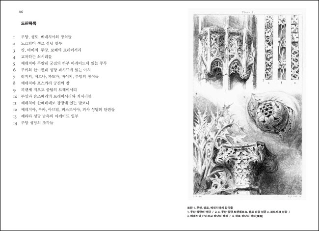 “이 성스러운 기억의 요체이자 수호자로서, 건축은 우리에게 있어 가장 진지하게 생각되어야 하는 것이다. 우리는 건축 없이도 살 수 있고 기도도 할 수 있지만, 그것 없이 기억을 할 수는 없다.” -6장 2절