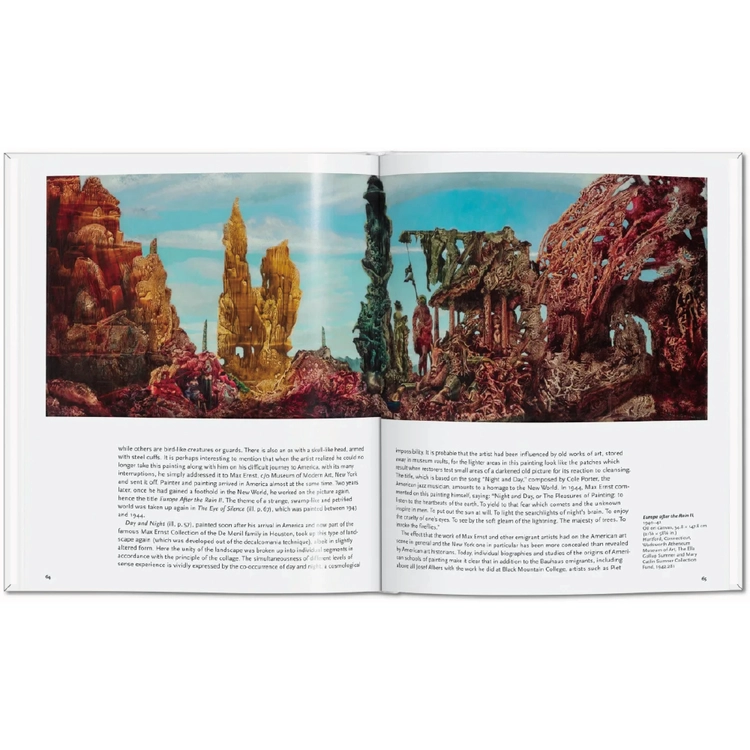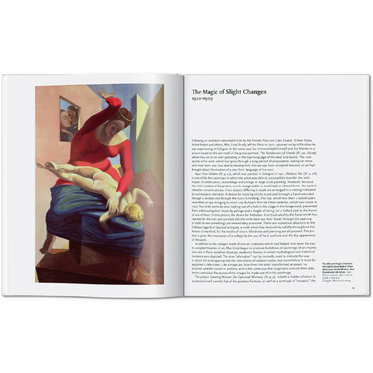 비할 데 없는 예술적 독창성으로 막스 에른스트 (1891–1976)는 그가 만진 모든 것을 변화시켰습니다. 그의 시대의 문화에 대한 제한된 관점으로부터 벗어나면서, 그는 다다주의와 초현실주의의 가장 중요한 인물들 중 한 명이 되었습니다. 1차 세계대전의 공포에 대한 반작용에 의해 이끌려, 그는 다다 운동의 선구자가 되었습니다. '혐오스러움'으로 쾰른에서 열린 유명한 다다 전시회의 폐막은 에른스트가 그의 여생을 초현실주의자들과 접촉했던 파리에서 보내도록 이끌었습니다.
