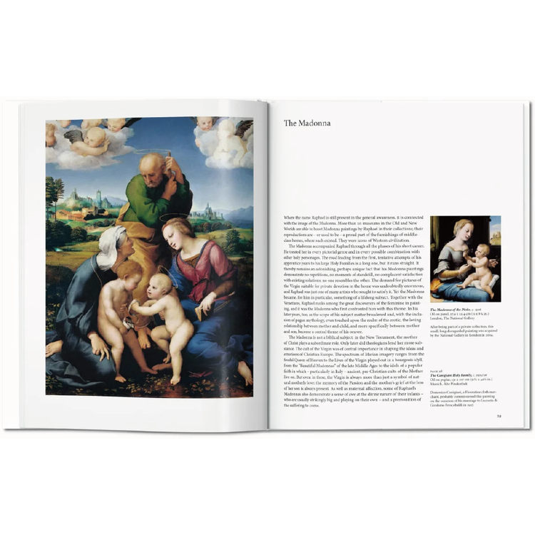 이 필수적인 서론은 라파엘이 불과 20년 간의 작업에서 전설적인 위대함으로 가는 길을 어떻게 그렸는지 탐구합니다. 그의 다작에서 나온 하이라이트들로, 그것은 르네상스 시대의 유명인사들의 삼위일체에서뿐만 아니라 역사상 가장 존경 받는 예술가들 사이에서 그의 자리를 확보한 인물들과 형태들의 숙달을 보여줍니다.