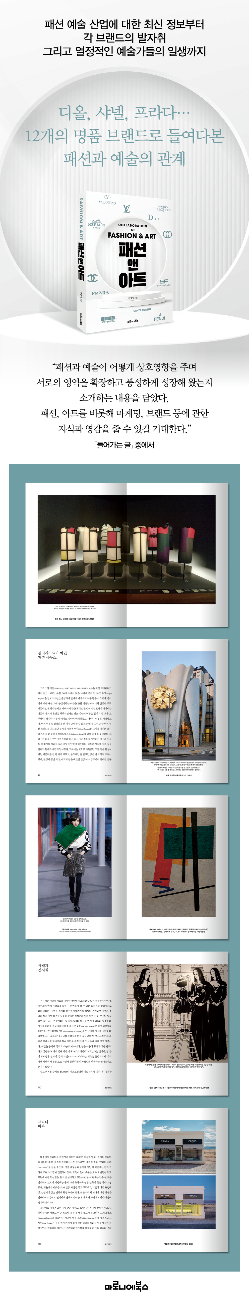 이 책에는 이브 생 로랑, 디올, 샤넬, 프라다 등 12개의 명품 브랜드와 그 브랜드가 예술과 상호작용하며 영향을 미치고 서로를 자라게 만드는 과정이 펼쳐진다. 각 브랜드의 이야기에는 패션과 예술 산업에 대한 최신 정보를 비롯해 각 브랜드의 발자취와 철학, 패션과 예술에 헌신한 개인들의 찬란한 일생이 함께 녹아 있다.
