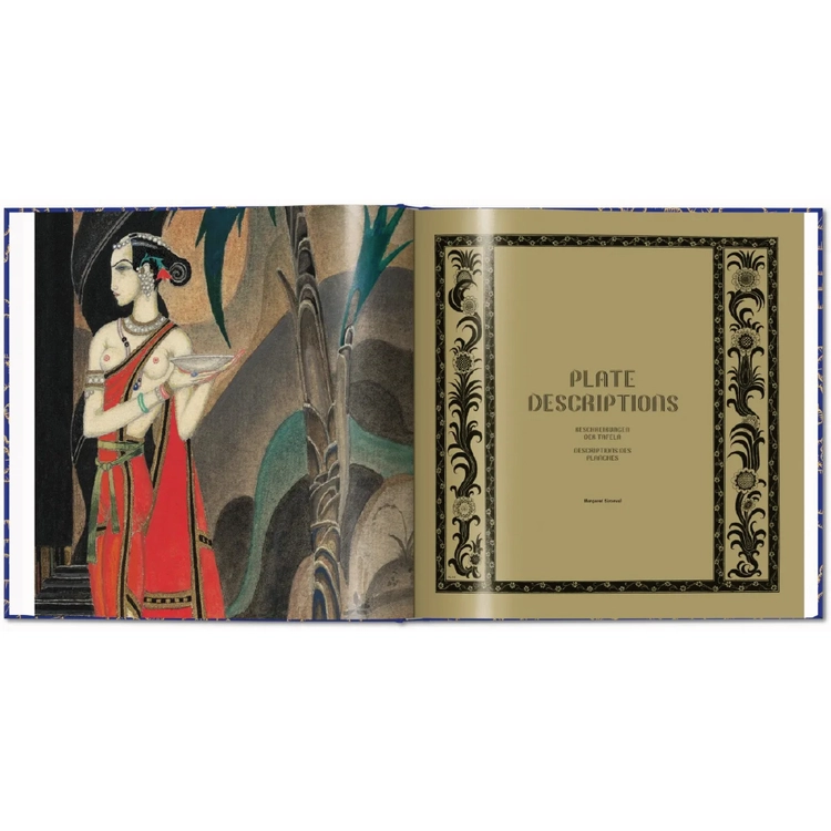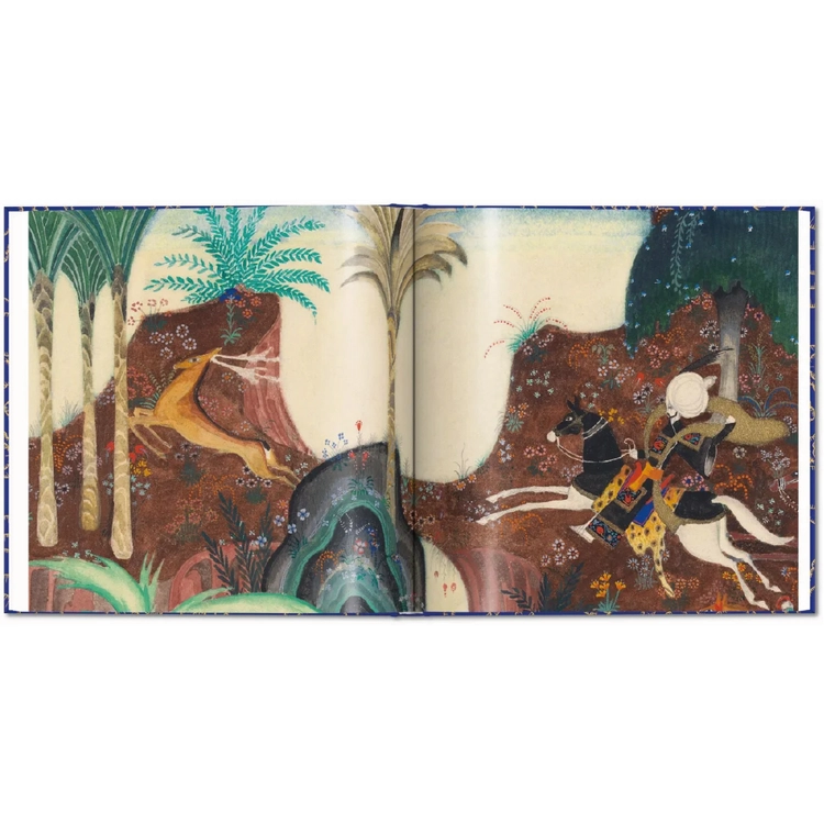 1910년대 후반, 제1차 세계 대전으로 황폐해진 유럽에서 덴마크의 삽화가 케이 닐슨(Kay Nielsen)은 그의 천일야도 삽화에 마무리 작업을 했습니다. 그 결과는 20세기 초 삽화의 걸작으로 여겨집니다: 짙은 파란색, 빨간색, 금색 나뭇잎의 호화로운 색상으로 가득 차 있고, 8세기에서 13세기 사이에 편찬된 인도-페르시아 및 아랍 민담의 전설적인 모음집의 모든 마법을 불러일으킵니다.