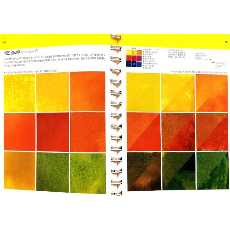 또한 이 책의 주요 부분인 혼색 디렉토리에 앞서 첫 번째 장에서 수채화라는 매체의 기본적인 특성을 이해할 수 있도록 수채화에 쓰이는 재료와 도구 및 기법, 색상 활용에 대한 정보와 설명을 제공한다. 혼색 디렉토리는 총 50가지 주제색상을 18가지의 기본 색상과 두 가지 다른 방식으로 혼색한 결과를 한 눈에 들어오게끔 정리해 놓은 것이다.