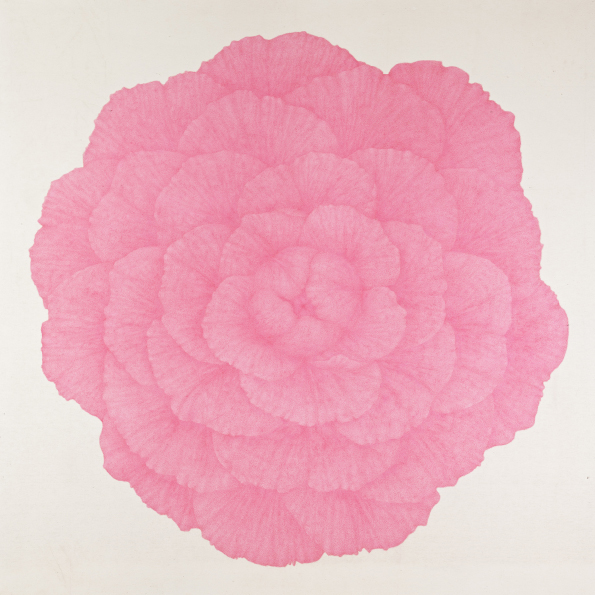 「무제」(2002)는 1990년대 중반부터 시작된 꽃 그림 연작의 하나이다. 커다란 캔버스에 오로지 한 송이의 꽃을, 그것도 정면으로 부각시켜 그렸다. 꽃 외에는 텅 비워버린 여백의 처리는 시선을 분산시키지 않고 집중케 하는 효과가 있다. 세필로 그려진 꽃 그림들은 이미 우리가 알고 있는 꽃의 형상을 벗어나 하나의 추상화로 전환된다. 김홍주의 꽃 그림은 관습적인 시선과 언어적인 의미를 탈피하여 보는 이로 하여금 상하좌우와 원근시점에 따른 무한한 해석 가능성을 제시하며 사물에 대한 새로운 시각적 정의를 유도한다. 2014년도에 열린 옥션에서 무제 97점이 완판되었고, 경매가는 최대 1억5천으로 낙찰되었다.