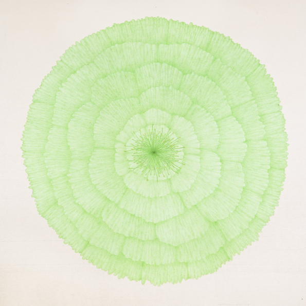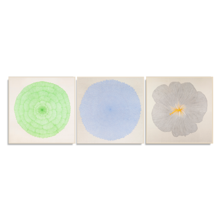 「무제」(2002)는 1990년대 중반부터 시작된 꽃 그림 연작의 하나이다. 커다란 캔버스에 오로지 한 송이의 꽃을, 그것도 정면으로 부각시켜 그렸다. 꽃 외에는 텅 비워버린 여백의 처리는 시선을 분산시키지 않고 집중케 하는 효과가 있다. 세필로 그려진 꽃 그림들은 이미 우리가 알고 있는 꽃의 형상을 벗어나 하나의 추상화로 전환된다. 김홍주의 꽃 그림은 관습적인 시선과 언어적인 의미를 탈피하여 보는 이로 하여금 상하좌우와 원근시점에 따른 무한한 해석 가능성을 제시하며 사물에 대한 새로운 시각적 정의를 유도한다. 2014년도에 열린 옥션에서 무제 97점이 완판되었고, 경매가는 최대 1억5천으로 낙찰되었다.