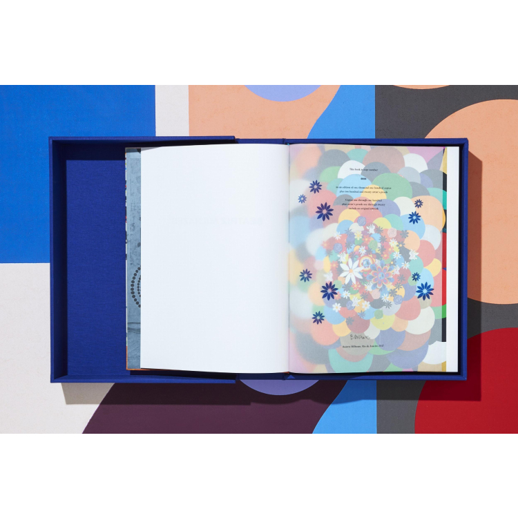또한 실크 스크린 인쇄물 '라일락과 보라색의 망고와 패션 프루트'가 포함된 100부의 아트 에디션(1–100번)으로도 제공됩니다. 각 편집자와 베아트리즈 밀하제스의 서명이 있습니다.