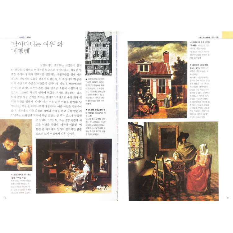 이 책에서는 베르메르의 삶과 작품을 ‘황금시대’로 알려졌던 당시 네덜란드의 문화․사회․정치적 맥락에서 조명하고 있다. 독자의 이해를 돕기 위해 책의 측면에 각각 다른 색의 색띠를 사용했다. 노란색은 베르메르의 삶과 작품을, 하늘색은 당대의 역사․문화적 배경을, 분홍색은 주요 작품 분석을 가리킨다. 이에 따라 각 이야기는 특정 주제에 초점을 맞춰 전개되고 있으며, 여기에 간략한 소개글, 몇 개의 도판을 설명과 함께 실었다. 찾아보기 부분에도 도판을 첨가했으며, 예술 작품과 관련한 주요 인물 및 장소에 대한 배경 지식을 더했다.