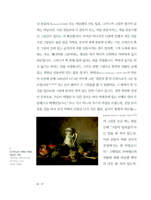 2003년 여름, ‘프랑스 퀼튀르’ 라디오 방송에서 25회에 걸쳐 방송했던 ‘그림의 역사’라는 프로그램을 책으로 엮었다. 이 책은 고대미술부터 현대미술까지 각 시대 미술의 특징을 지루하게 설명하거나 나열하는 정형화된 서양미술사 책이 아니다. 그림의 특이한 신비로움을 포착하여 분석한 것을 독자들이 이해하기 쉽도록 친절하게 설명한다.