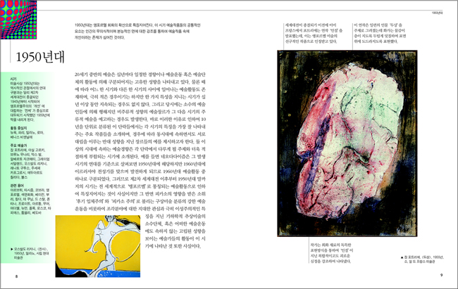 20세기 중반의 예술은 10년마다 일정한 경향이나 예술운동 혹은 예술단체의 활동에 의해 구분되는 고유한 성향을 보이고 있다. 아르브뤼, 코브라 등 다양한 예술사조 경향이 등장하며 팝아트, 퍼포먼스와 해프닝, 세계대전 이후 이탈리아에서 일어났던 아르테 포베라와 같은 다양한 예술 운동이 일어났다.