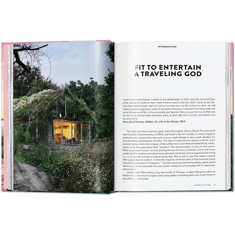 《Cabins》는 통찰력 있는 텍스트, 풍부한 사진, 그리고 마리-로르 크루쉬(Marie-Laure Cruschi)의 밝고 현대적인 일러스트레이션을 통해, 이 독특한 건축 양식이 창의적인 사고에 어떤 가능성을 제공하는지를 보여줍니다.