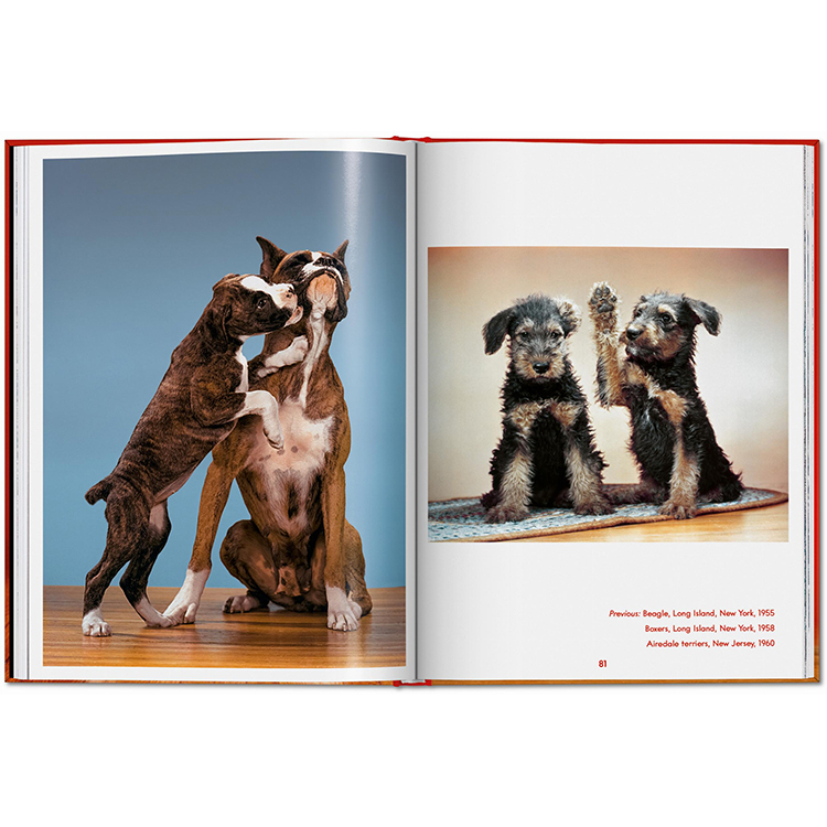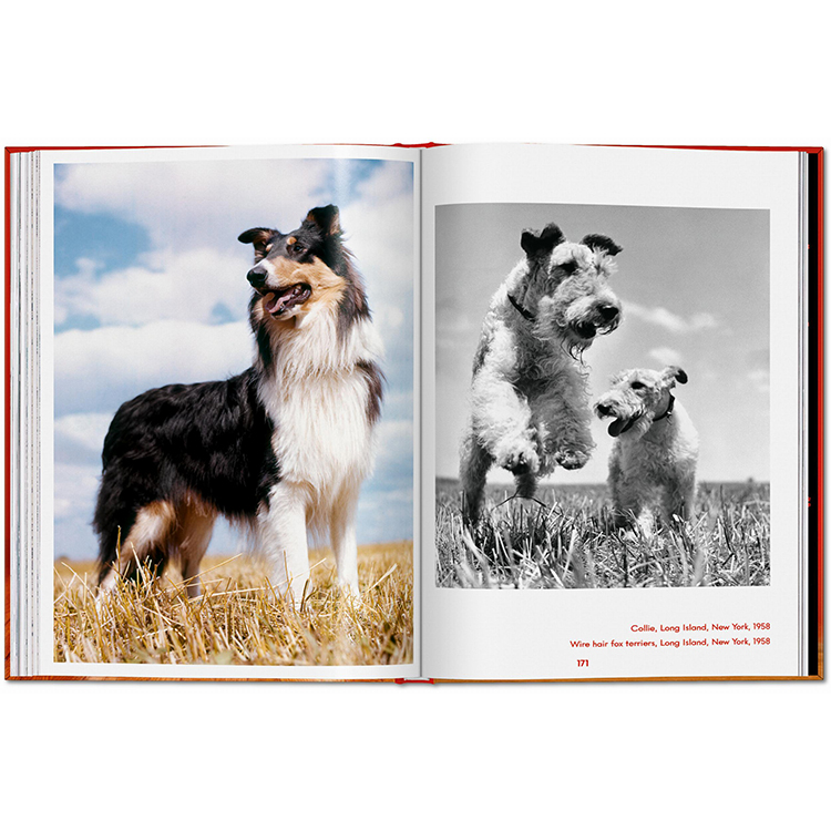책에는 테리어, 콜리, 비글, 블러드하운드, 푸들, 소형견부터 대형견, 쇼독, 작업견까지—60종이 넘는 다양한 견종이 흑백과 생생한 코닥크롬 컬러로 담겨 있습니다.