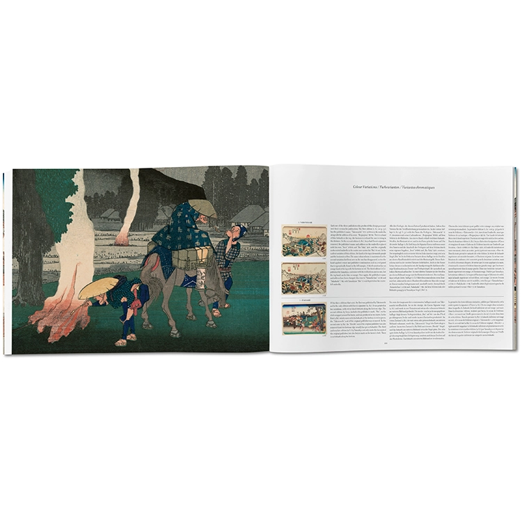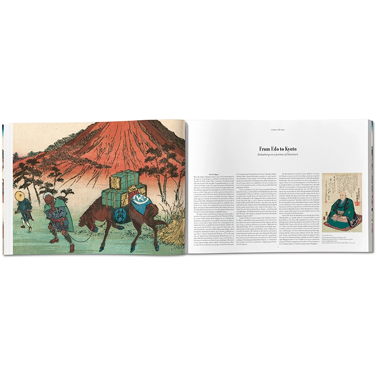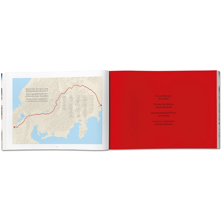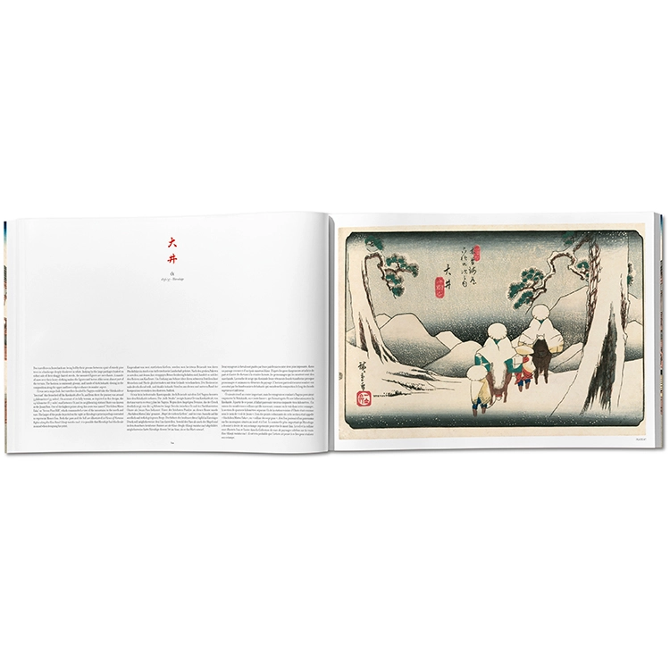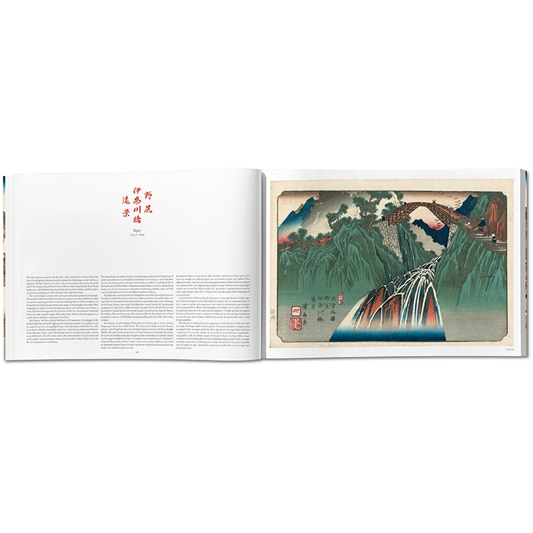 《기소카이도 69차》 시리즈는 대담한 구성과 색채 실험을 포함한 목판화 걸작일 뿐 아니라, 산업화 이전 19세기 일본의 매력적인 풍경을 담은 하나의 거대한 직물과도 같습니다. 이 타셴(TASCHEN) 판본은 시리즈 초판의 거의 완전한 유일본을 원본으로 삼아, 일본 전통 방식으로 장정하고 미개봉 상태의 최고 품질로 복원하였습니다. 타셴의 《에도의 백경(One Hundred Famous Views of Edo)》과 완벽한 짝을 이루는 이 책은 시각적 즐거움과 함께 제국 일본 시대의 중요한 역사적 유산을 동시에 제공합니다.