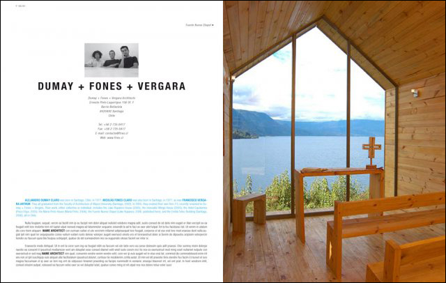 70F, A1Architects, AldingerArchitekten, Atelier Masuda, Auer+Weber+Assoziierte, Pieta-Linda Auttila, Shigeru Ban, Beals-Lyon Arquitectos / Christian Beals, Bernardes + Jacobsen, BETON, Bohlin Cywinski Jackson, Enrique Browne, Bernard Bühler, Marco Casagrande, José Cruz Ovalle, dECOi Architects, dmvA, dRN Architects, Dumay + Fones + Vergara, Piet Hein Eek, ETH-Studio Monte Rosa / Bearth & Deplazes, Edouard François, General Design, Seppo Häkli, Yosuke Inoue, IROJE KHM Architects, Jackson Clements Burrows, Emma Johansson and Timo Leiviskä, Kauffmann Theilig & Partner, Mathias Klotz, Marcio Kogan, Kirsi Korhonen and Mika Penttinen, Nic Lehoux and Jacqueline Darjes, Niall McLaughlin Architects, Andreas Meck, Beatriz Meyer, Ken Sungjin Min, Murman Arkitekter, Rolf Carl Nimmrichter, Valerio Olgiati, Onix, PUSHAK, Room 11, Hans-Jörg Ruch, SARC Architects, Rodrigo Sheward, Simas and Grinspum, Studio Weave, Tezuka Architects, Turnbull Griffin Haesloop, Wingårdhs