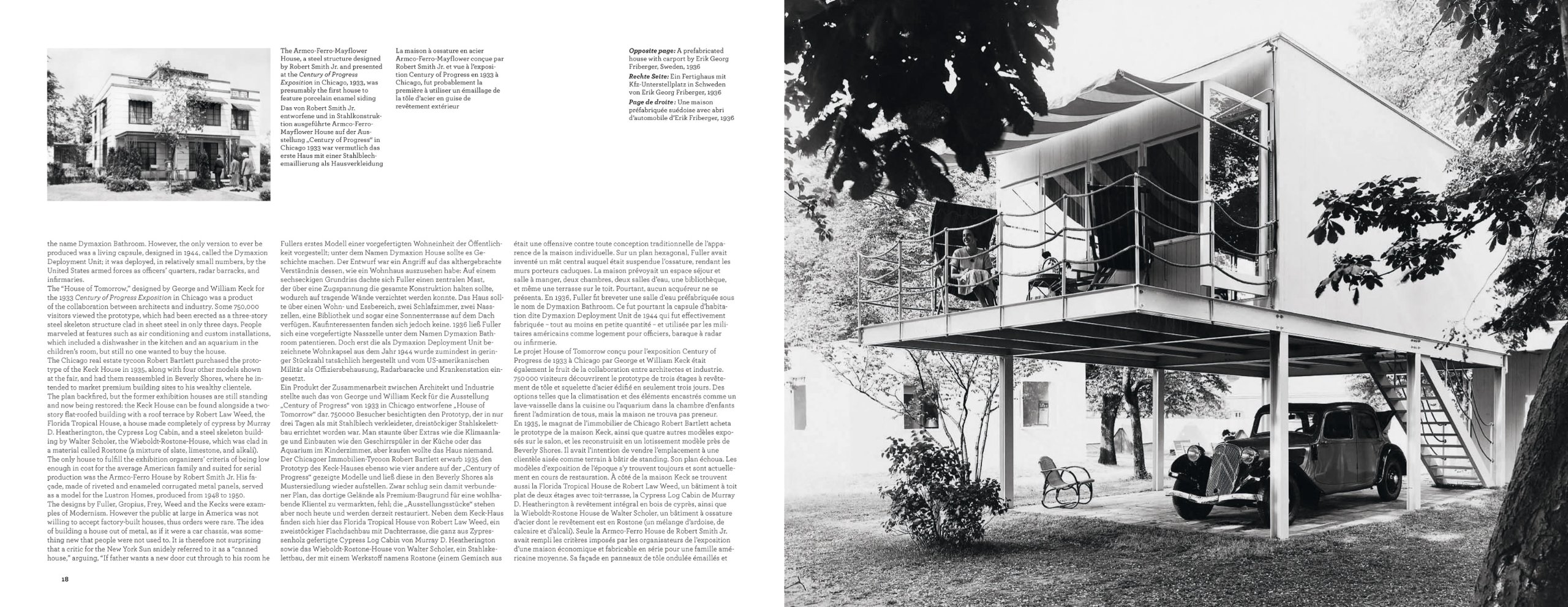 조립식 주택의 놀라운 역사는 1830년대 영국에서 호주로 이주하는 이민자들을 위한 건축 키트에서 시작한다. 오늘날 조립식 주택은 세계 여러 나라의 거주 지역 중 높은 비율을 차지하기도 한다. 이 책은 미국, 유럽을 거쳐 아시아와 아프리카의 조립식 주택들을 다루면서 다양한 산업적 조립식 요소들, 건축 부지 제공의 어려움, 복잡한 조립과 완성에 대한 인사이트를 제공한다. 가장 최근의 조립 주택 솔루션을 내놓는데까지 진화한 모더니즘과 산업화 사이의 접목지점을 추적할 뿐 아니라, 일상적인 생활을 위한 부지 밖에 지어진 훌륭한 거주지와 국제적으로 잘 알려진 건축가들이 지은 독특한 일회용 조립식 건축물들의 조합을 담고 있다.