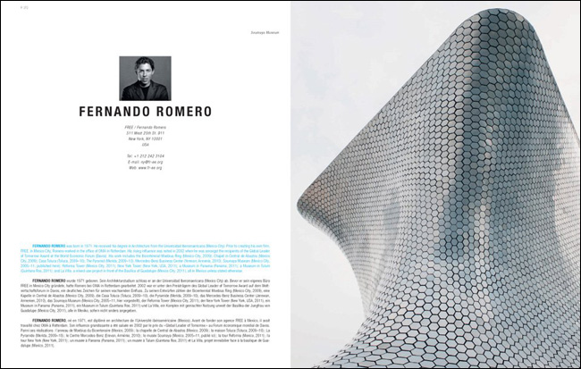 2012Architecten, 24H Architecture, Effan Adhiwira, AFF Architekten, al bordE, Aparicio + Donaire, Ron Arad, Birk & Heilmeyer, Odile Decq Benoît Cornette, FELIX-DELUBAC, Foster + Partners, Sou Fujimoto, Massimiliano and Doriana Fuksas, Manuelle Gautrand, Frank O. Gehry, Zaha Hadid, Hapsitus, HplusF Architects, IA+B, Arata Isozaki, Jakob + MacFarlane, Diébédo Francis Kéré, Kengo Kuma, Li Xiaodong, LIN Finn Geipel Giulia Andi, Luis Longhi, LOT-EK, Gurjit Singh Matharoo, Maurer United, Giancarlo Mazzanti, Morphosis, Neri & Hu, Neutelings Riedijk Architects, Ryue Nishizawa, Jean Nouvel, Bassam El Okeily, Olson Kundig Architects, Carlos Ott, Muti Randolph, rare architecture, REX, Fernando Romero, Todd Saunders, Savioz Fabrizzi, Kazuyo Sejima & Associates, Studio Mumbai, Terrain, Undurraga Deves, UNStudio, Urbana, Various Architects, Vo Trong Nghia, Isay Weinfeld, Changki Yun, Peter Zumthor
