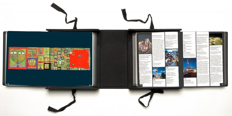 제 1권에는 유명한 예술사가이자 훈데르트바써의 오랜 친구인 바인랜드 슈미츠(Wieland Schmied)의 글과 선정된 그림, 건축 작품, 프로젝트, 연설문 등이 수록되어 있다. 제 2권에는 훈데르트바써의 정교한 분류와 정보 시스템에 따른 그의 회화 작품과 건축물, 우표에서부터 라이선스 판과 건축물, 응용 미술 작품 등과 같이 그가 탄생시킨 모든 것들이 수록되어 있다.